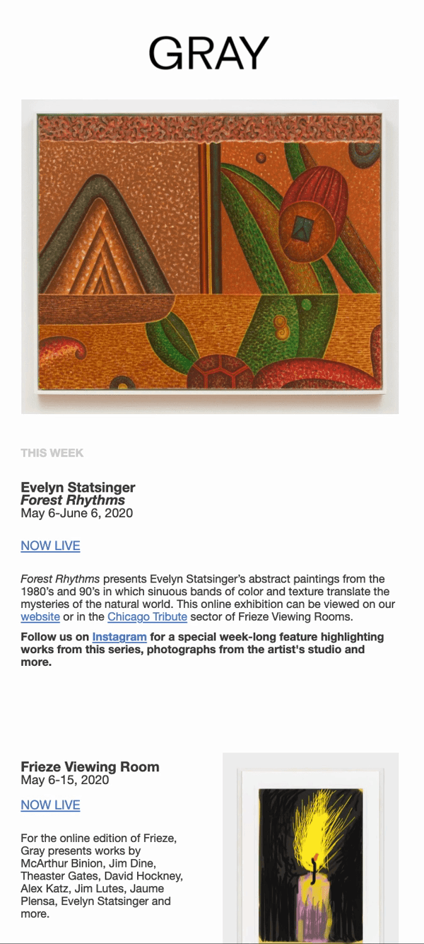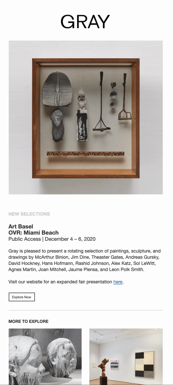 Embarking on an exciting rebranding journey, the gallery leaves behind its old name, Richard Gray Gallery, and embraces a fresh identity as Gray Gallery. A sleek and modern logo accompanies this change, reflecting the gallery's contemporary vibe. To maintain a cohesive brand image, all design elements adhere to the new guidelines, ensuring consistency across various mediums.